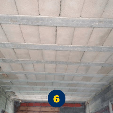 La colocación es manual, comenzando por las viguetas, y utilizando las bovedillas como distanciadores.