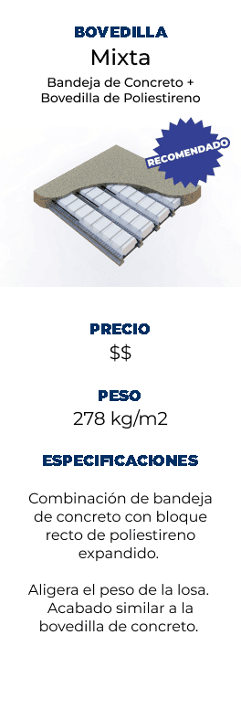 Es un sistema constructivo compuesto por viguetas prefabricadas, pretensadas, bovedillas y losa de compresión vaciada en obra. Se usan en su mayoría para la construcción de viviendas, oficinas y otras edificaciones. Este sistema no requiere armado de fondo, solo soleras y puntales como elementos de apoyo.